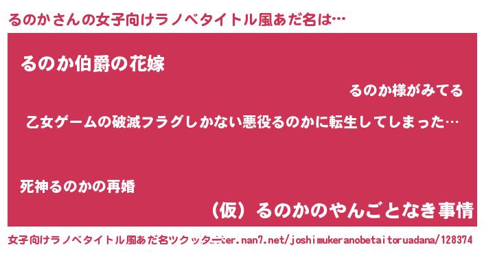 | ファンタジー風あだ名 | 『ヴァルルノーナ』『エターナルルノカー』 |
