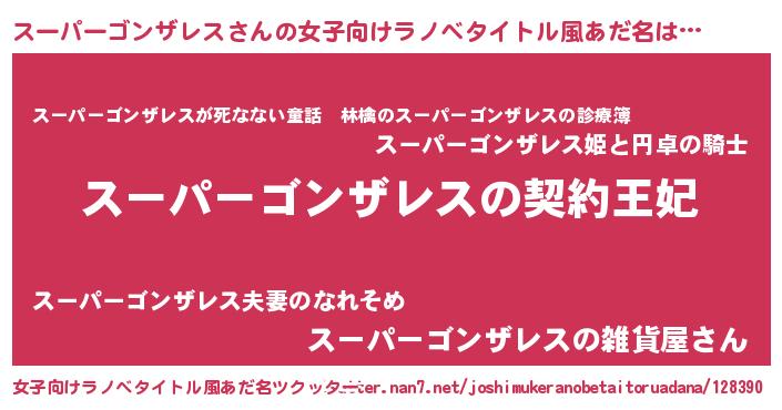 | 男性向けラノベタイトル風あだ名 | 『スーパーゴンザレスという概念が存在しない退屈な世界 』 |