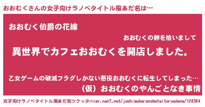 | 胡散臭い通販商品みたいなあだ名 | 『前代未聞の健康食品…その名も「おおむく」』 |