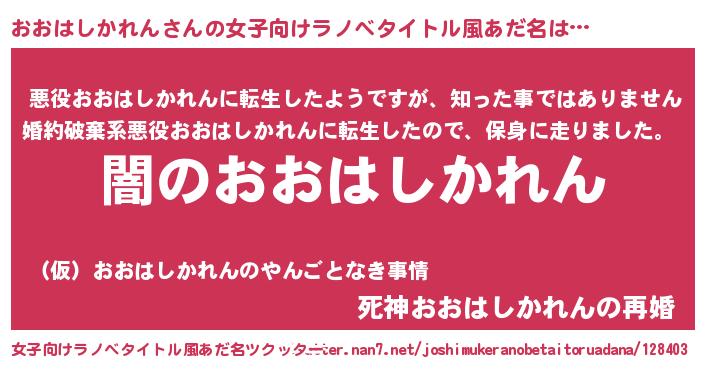 | 胡散臭い通販商品みたいなあだ名 | 『テレビで話題の高麗人参…その名も「おおはしかれん」』 |