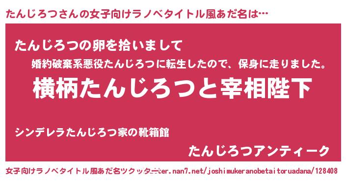 | 男性向けラノベタイトル風あだ名 | 『たんじろつに滅ぼされるだけの簡単なお仕事です』 |