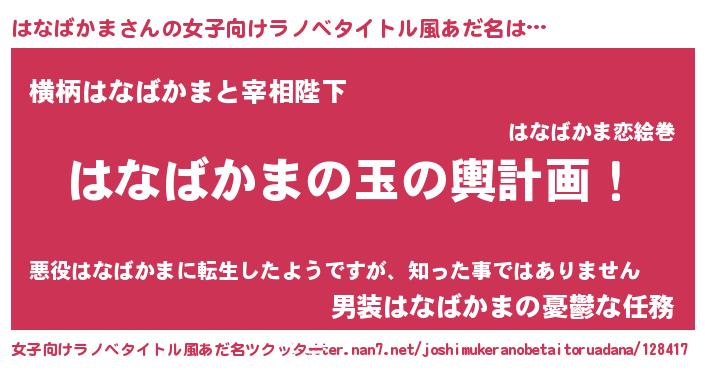 | 男性向けラノベタイトル風あだ名 | 『転生したらはなばかまだった件』 |