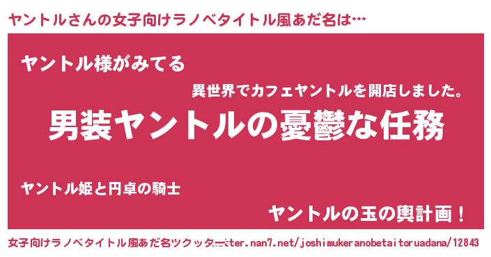 | 男性向けラノベタイトル風あだ名 | 『冴えないヤントルの育てかた』 |