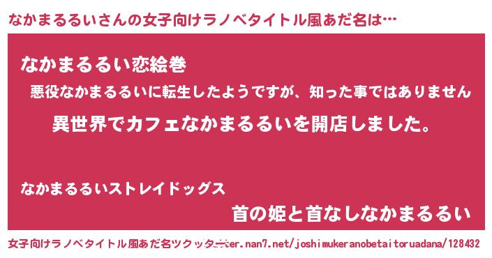 | 男性向けラノベタイトル風あだ名 | 『誰もが恐れるあのなかまるるいが、ぼくの専属メイドになるようです。』 |