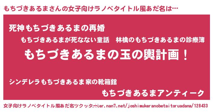 | 男性向けラノベタイトル風あだ名 | 『もちづきあるま~年齢イコール彼女いない歴の魔法使い~』 |