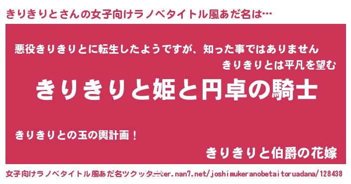 | 男性向けラノベタイトル風あだ名 | 『キリキリトアートオンライン』 |