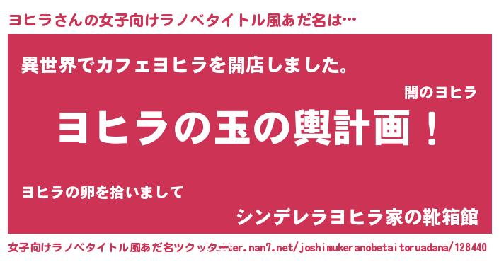 | ヘコむあだ名 | 『ヨヒラ(遠い目)』『ヨヒお』『豆乳』 |