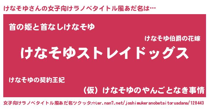 | 男性向けラノベタイトル風あだ名 | 『Re:けなそゆから始める異世界生活』 |