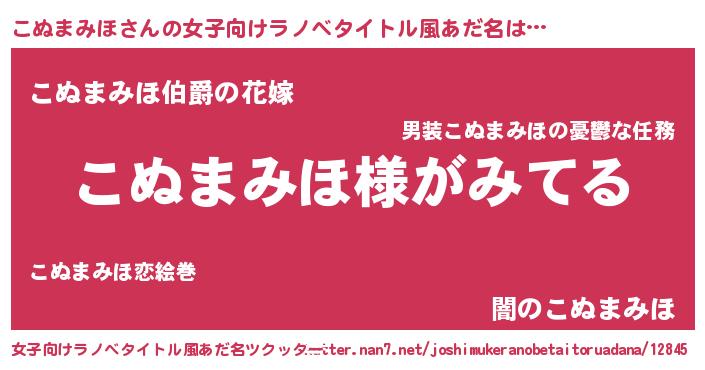 | 男性向けラノベタイトル風あだ名 | 『こぬまみほの嫁は女の子じゃないと思った?』 |