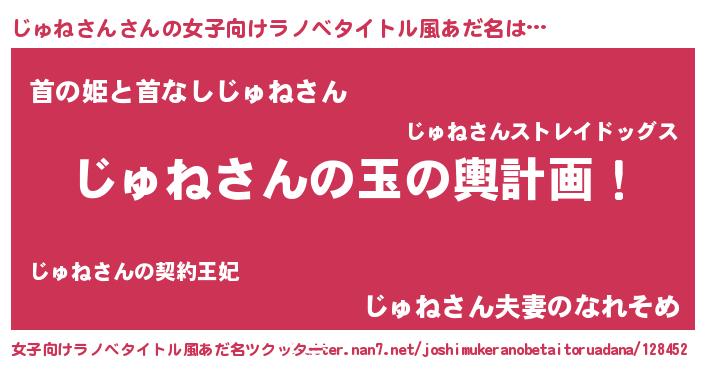 | 男性向けラノベタイトル風あだ名 | 『転生したらじゅねさんだった件』 |