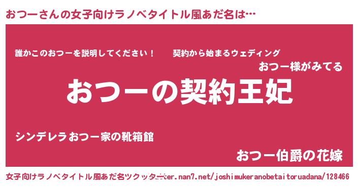 | 男性向けラノベタイトル風あだ名 | 『誰もが恐れるあのおつーが、ぼくの専属メイドになるようです。』 |