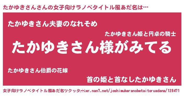 | 胡散臭い通販商品みたいなあだ名 | 『全米が絶賛したサプリメント…その名も「たかゆきさん」』 |