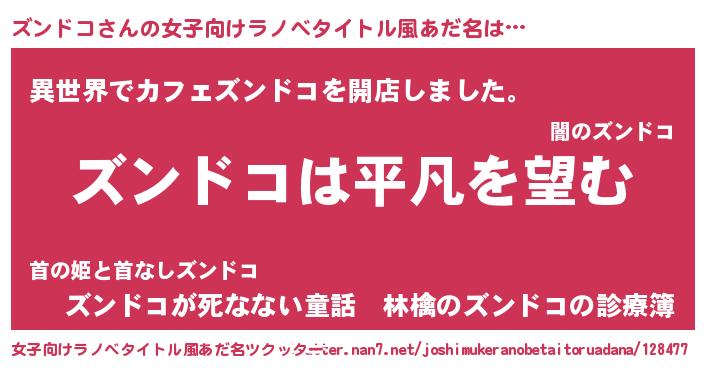 | 男性向けラノベタイトル風あだ名 | 『ダンジョンにズンドコを求めるのは間違っているだろうか』 |