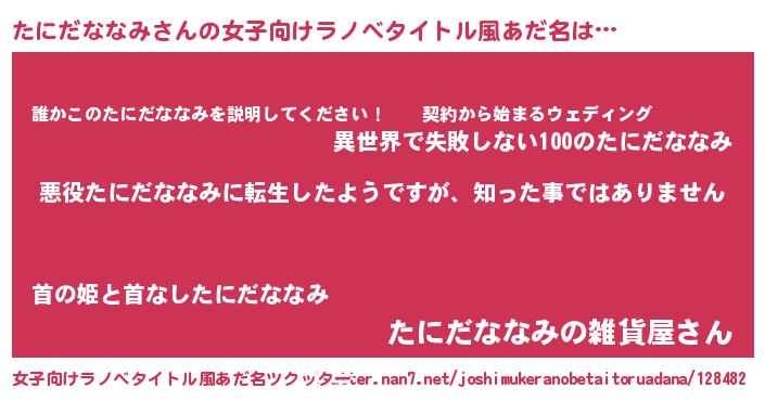| 胡散臭い通販商品みたいなあだ名 | 『あなたにだけ特別に提供する100年もののヴィンテージワイン…その名も「たにだななみ」』 |