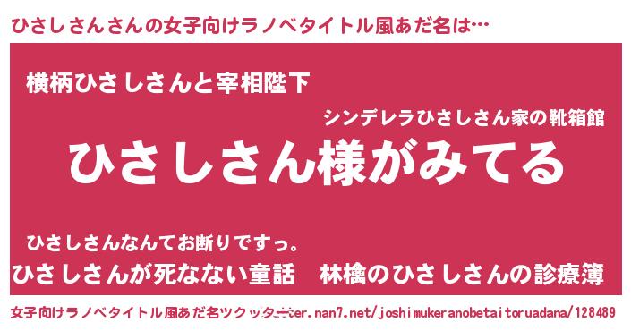 | 男性向けラノベタイトル風あだ名 | 『ひさしさんの嫁は女の子じゃないと思った?』 |
