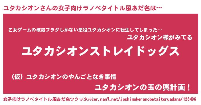 | 男性向けラノベタイトル風あだ名 | 『Re:ユタカシオンから始める異世界生活』 |