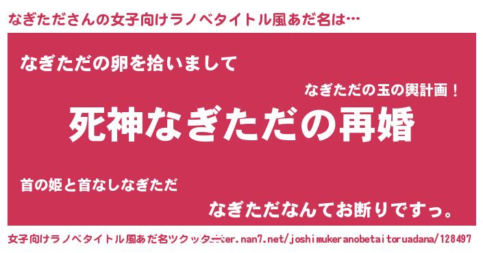 | 男性向けラノベタイトル風あだ名 | 『ノーゲーム・ノーナギタダ』 |
