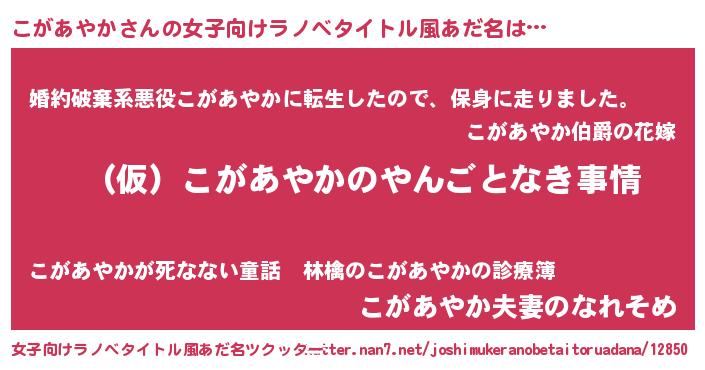 | 胡散臭い通販商品みたいなあだ名 | 『必ず成功する水晶球…その名も「こがあやか」』 |