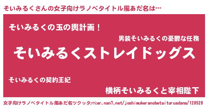 | 男性向けラノベタイトル風あだ名 | 『Re:そいみるくから始める異世界生活』 |