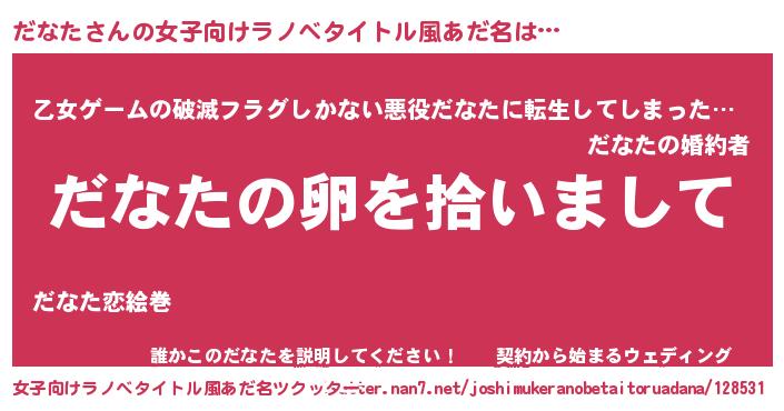 | 男性向けラノベタイトル風あだ名 | 『ダンジョンにだなたを求めるのは間違っているだろうか』 |
