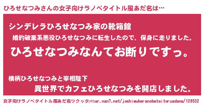 | 男性向けラノベタイトル風あだ名 | 『魔法科高校のひろせなつみ』 |