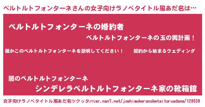| 男性向けラノベタイトル風あだ名 | 『ベルトルトフォンターネアートオンライン』 |