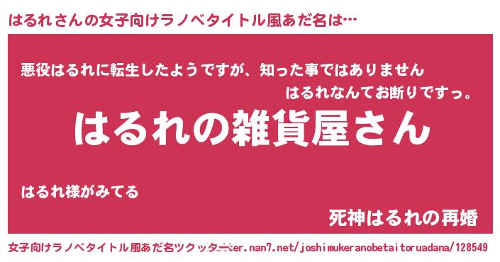 | 男性向けラノベタイトル風あだ名 | 『やはりはるれの青春ラブコメはまちがっている 』 |