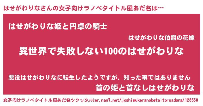 | 男性向けラノベタイトル風あだ名 | 『はせがわりなという概念が存在しない退屈な世界 』 |