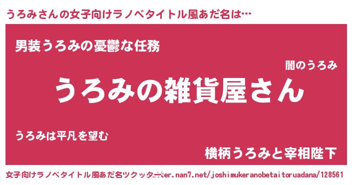 | ヒーロー風カッコイイあだ名 | 『ウルトラうろみマン』『最強戦士ウロミ』 |