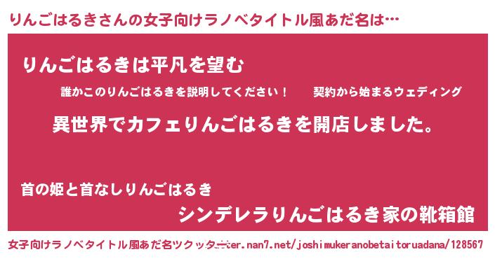 | 男性向けラノベタイトル風あだ名 | 『誰もが恐れるあのりんごはるきが、ぼくの専属メイドになるようです。』 |