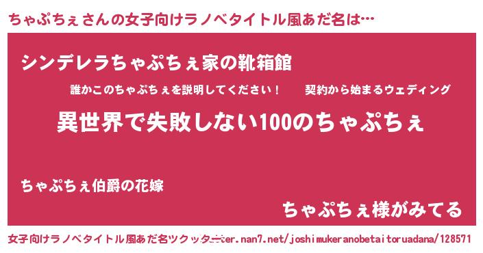 | ヘコむあだ名 | 『ちゃぷちぇ(小並感)』『ちゃお』 |