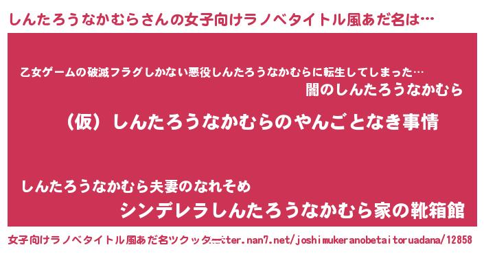 | 男性向けラノベタイトル風あだ名 | 『しんたろうなかむらの憂鬱』 |