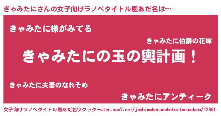 | 男性向けラノベタイトル風あだ名 | 『転生したらきゃみたにだった件』 |