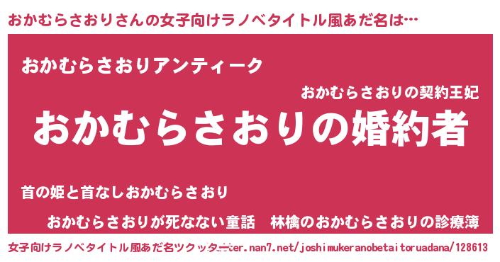 | 胡散臭い通販商品みたいなあだ名 | 『運命の人と巡り会える高級そうな壺…その名も「おかむらさおり」』 |