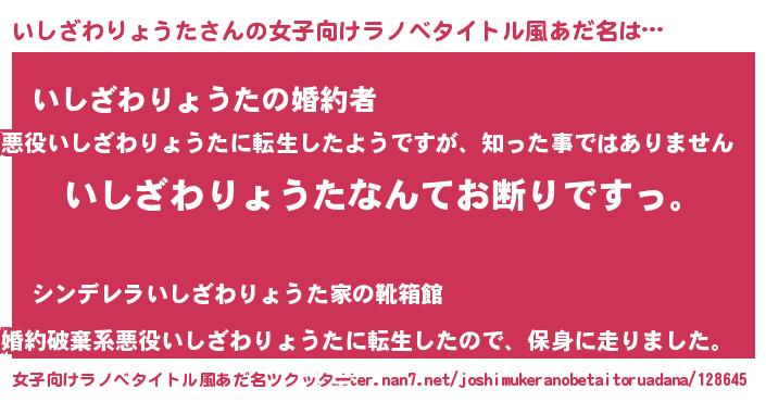 | 意味不明あだ名 | 『自称いしざわりょうた』 |