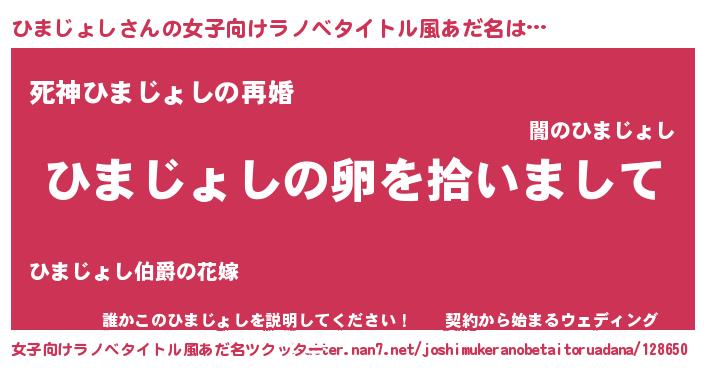 | 男性向けラノベタイトル風あだ名 | 『ひまじょしの嫁は女の子じゃないと思った?』 |