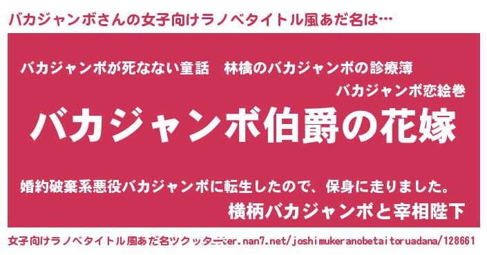 | 男性向けラノベタイトル風あだ名 | 『やはりバカジャンボの青春ラブコメはまちがっている 』 |