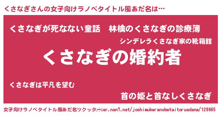 | 肩書あだ名 | 『くさなぎ国家主席』『くさなぎ教官』 |
