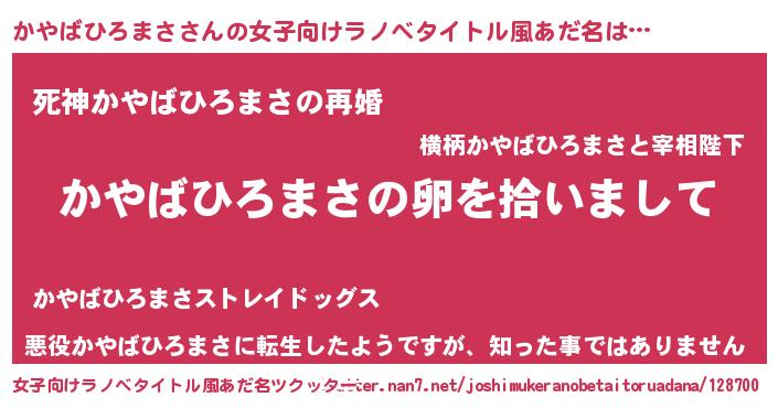 | 男性向けラノベタイトル風あだ名 | 『ダンジョンにかやばひろまさを求めるのは間違っているだろうか』 |
