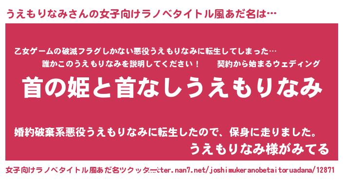 | 意味不明あだ名 | 『住所不定無職うえもりなみ(8歳)』 |