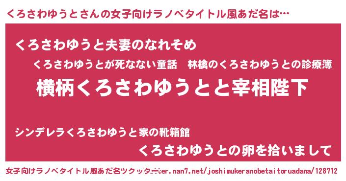 | 伝説のあだ名 | 『救世主となる技術者くろさわゆうと』 |