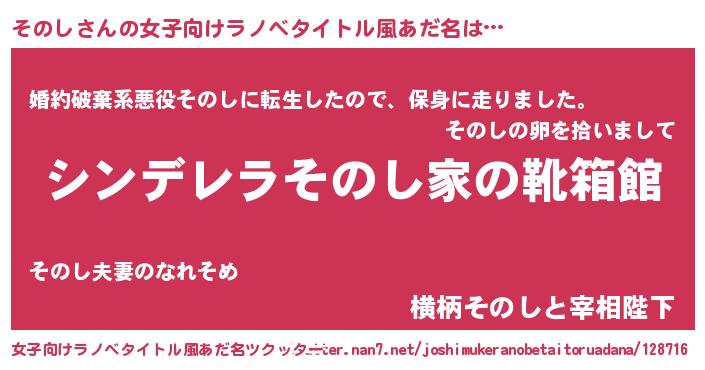 | 男性向けラノベタイトル風あだ名 | 『緋弾のソノシ』『ソノシスレイヤー』 |