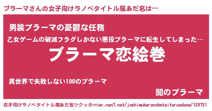 | ヘコむあだ名 | 『ブラーマ(小並感)』『ブラふぇ~』 |