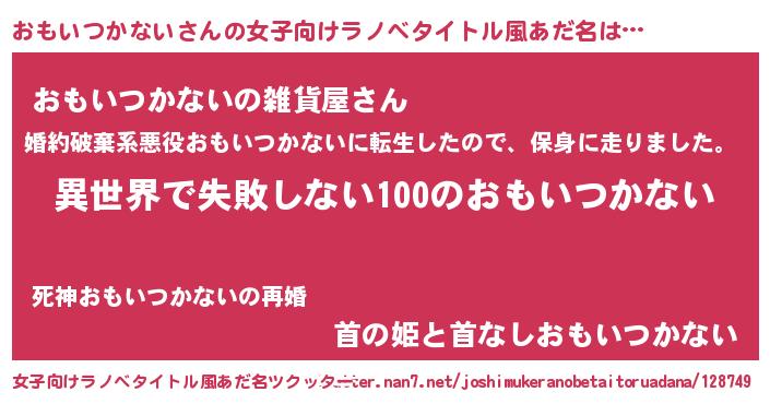 | 胡散臭い通販商品みたいなあだ名 | 『絶対に幸福をもたらす健康食品…その名も「おもいつかない」』 |