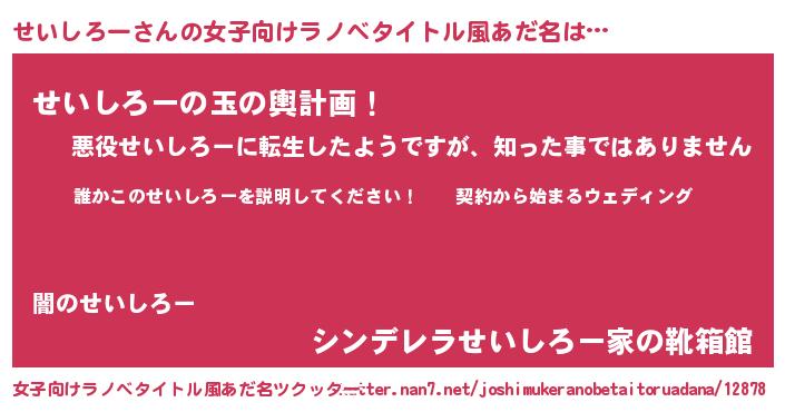 | 意味不明あだ名 | 『ペロリンせいしろー』『自称せいしろー』 |