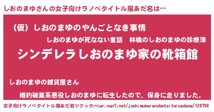 | 胡散臭い通販商品みたいなあだ名 | 『必ず成功するブレスレット…その名も「しおのまゆ」』 |