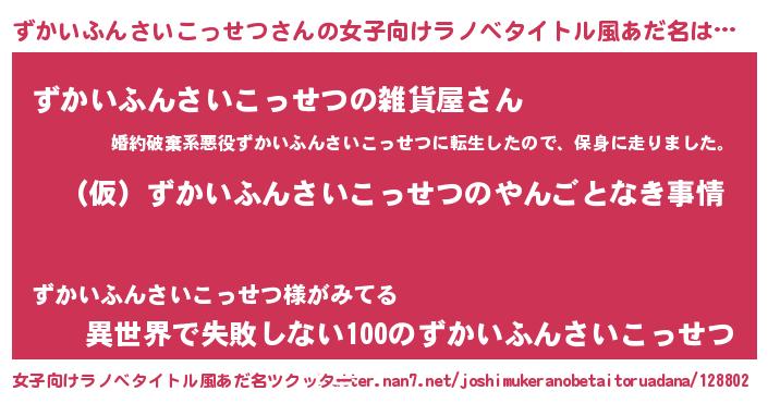 | 男性向けラノベタイトル風あだ名 | 『ずかいふんさいこっせつの憂鬱』 |
