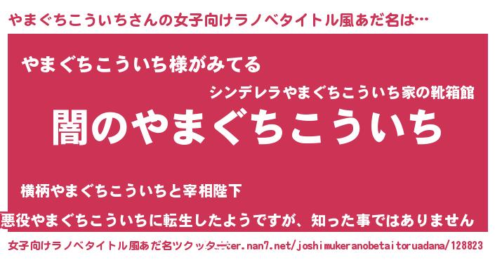 | 男性向けラノベタイトル風あだ名 | 『Re:やまぐちこういちから始める異世界生活』 |