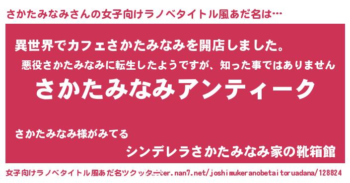 | 肩書あだ名 | 『さかたみなみ総統』『さかたみなみ先生』 |
