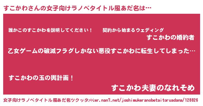 男性向けラノベタイトル風あだ名 | 『この素晴らしい世界にすこかわを!』 |